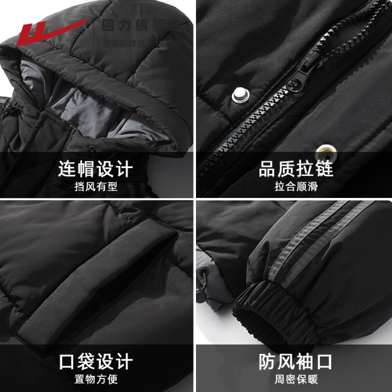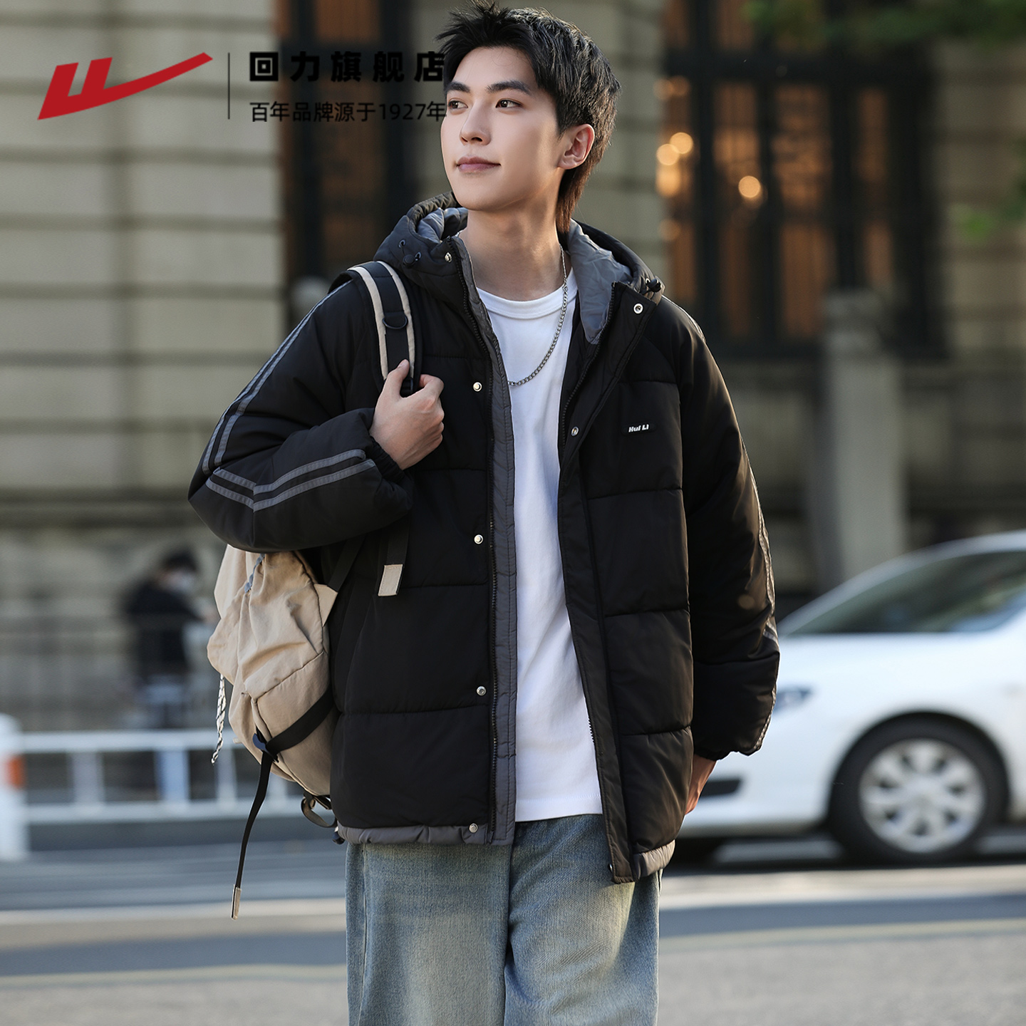 回力棉服男冬季加厚保暖连帽外套面包服新款防风防水羽绒棉衣棉袄