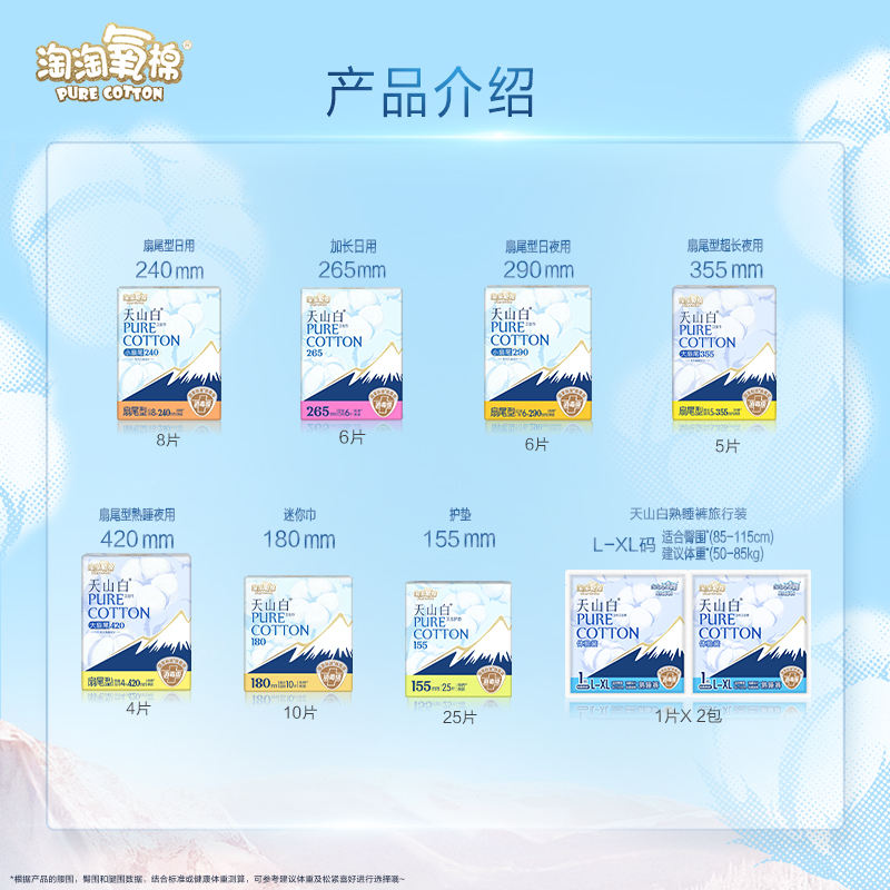 【任选6包】淘淘氧棉天山白小扇尾消毒级纯棉卫生巾安睡裤组合
