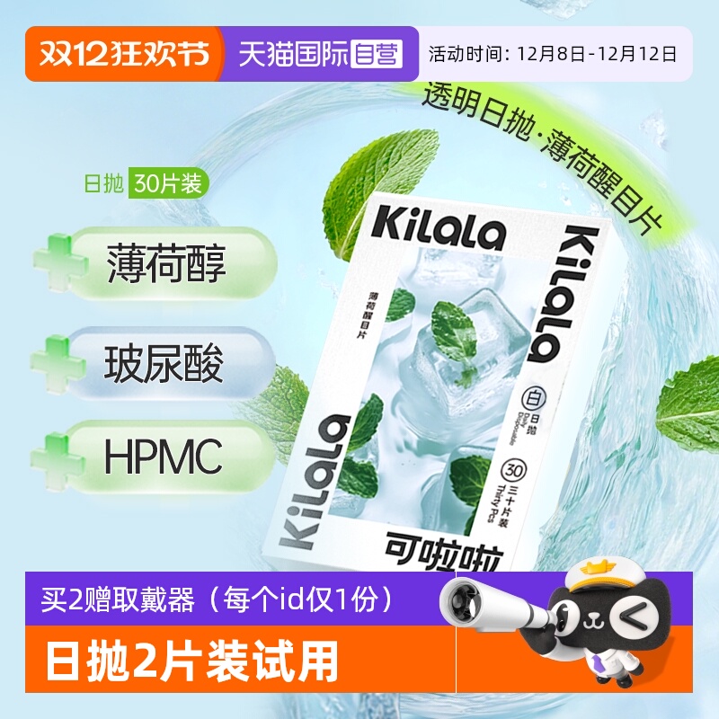 【自营】Kilala可啦啦薄荷醒目隐形眼镜日抛30片装玻尿酸水润透明