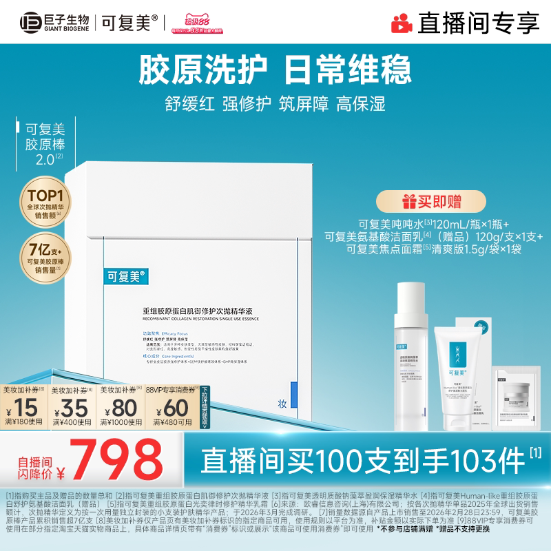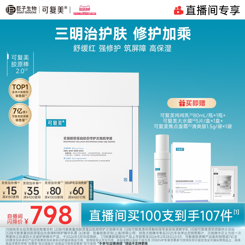 【直播专属王子奇同款】可复美胶原棒重组胶原蛋白修护次抛100支