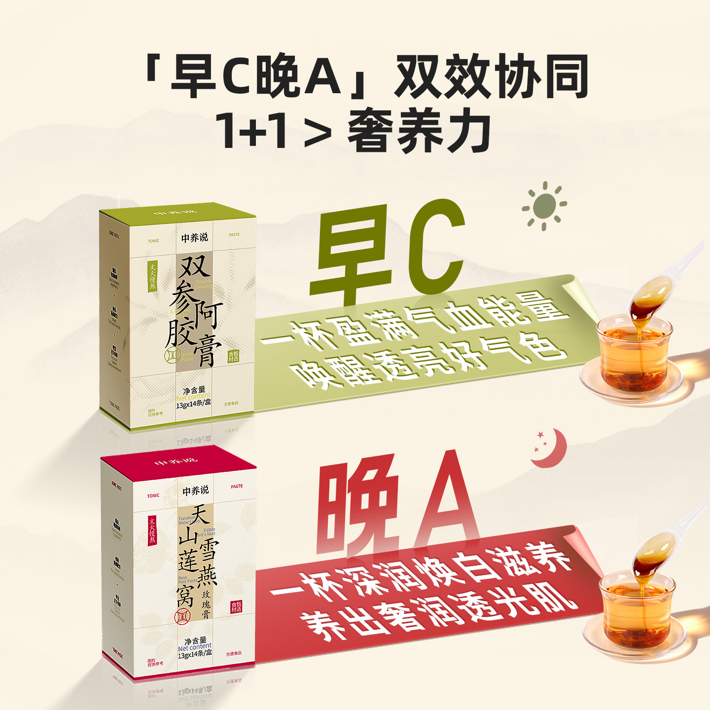 中养说早C晚A养颜膏西洋参人参阿胶燕窝玉灵膏气血双补滋补养生膏