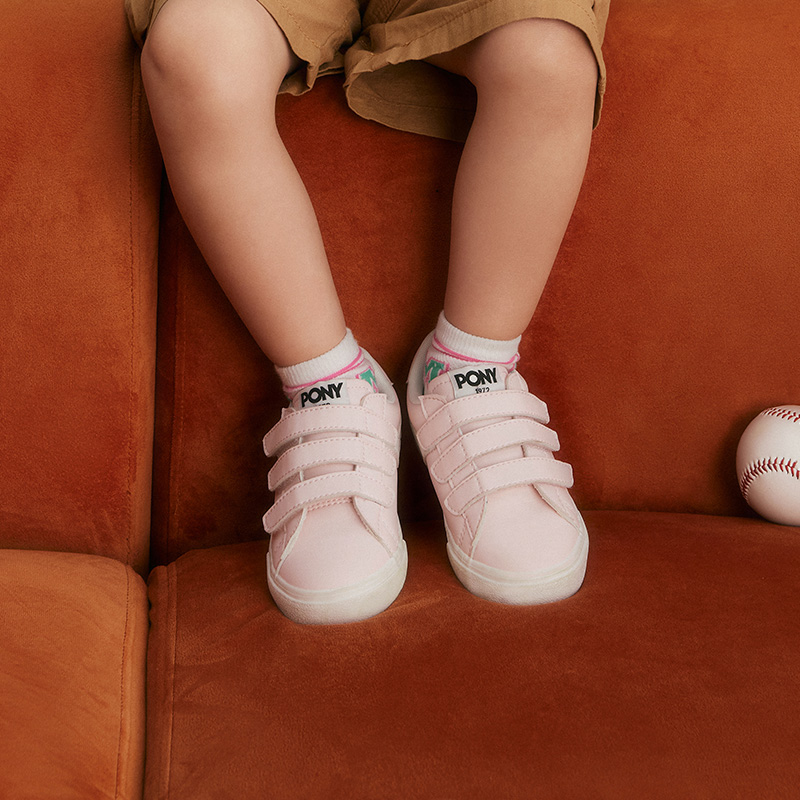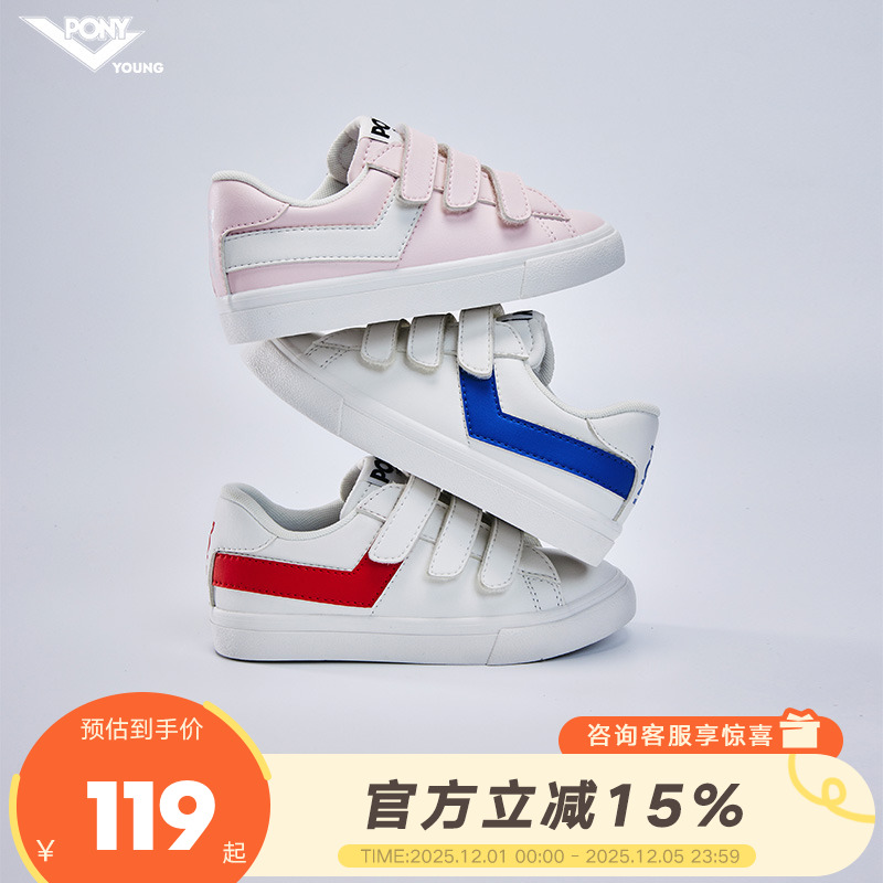 pony儿童板鞋男童女童春秋款软皮鞋面轻便魔术贴运动鞋防滑小白鞋