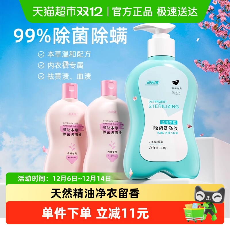 【下拉详情领优惠】妇炎洁内衣内裤清洗液女祛血渍抑菌专用洗衣液