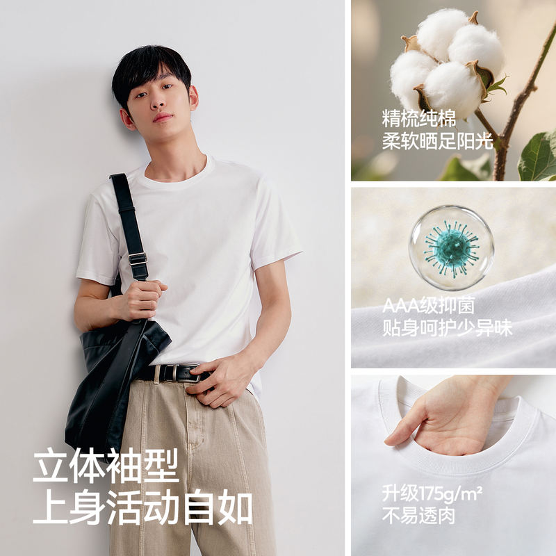 森马纯棉3A抗菌T恤男2026夏新款纯色圆领内搭打底衫基础百搭短袖