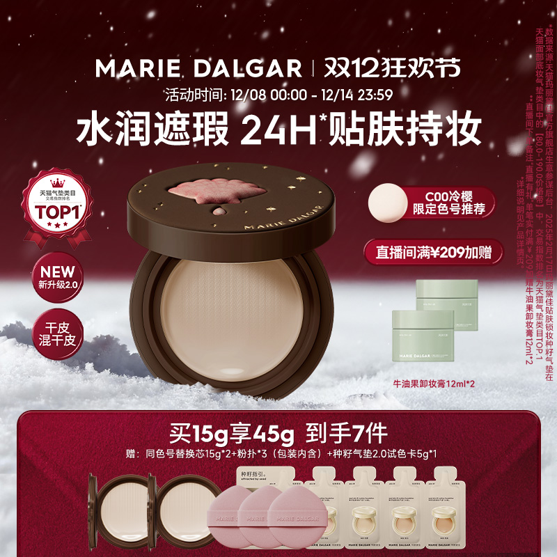玛丽黛佳种籽气垫2.0干皮/混干皮适用防蹭防汗粉底持久贴肤锁妆