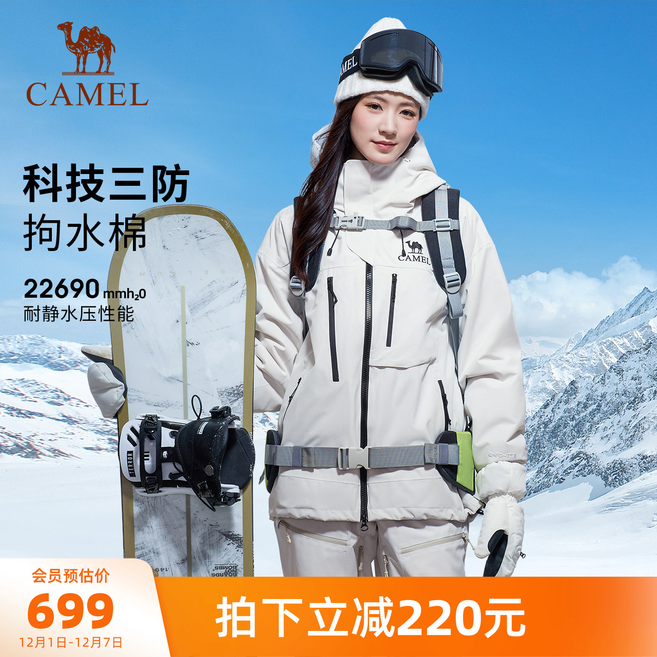 骆驼户外单板滑雪服女2025秋冬新款专业防水防雪保暖外套男冲锋衣
