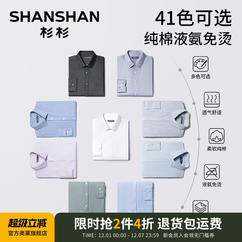 杉杉官方长袖衬衫男士2025春季新款易打理全棉商务白色衬衣男纯棉