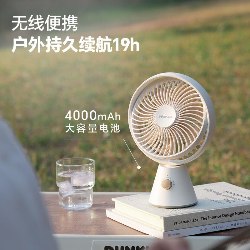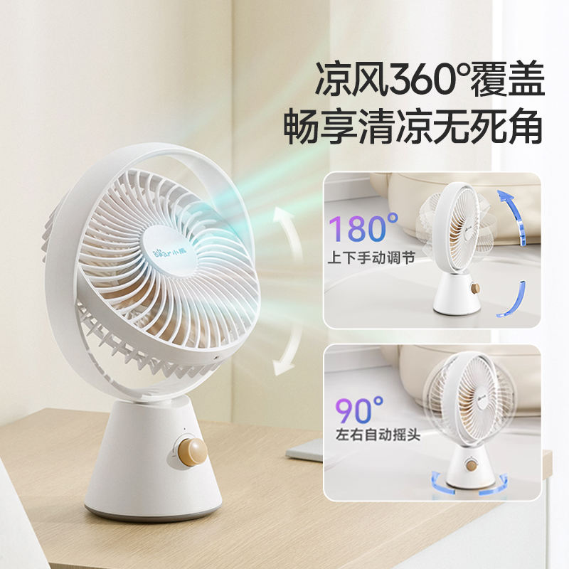 小熊电风扇桌面风扇办公室摇头小型风扇台式充电无线续航台扇新款
