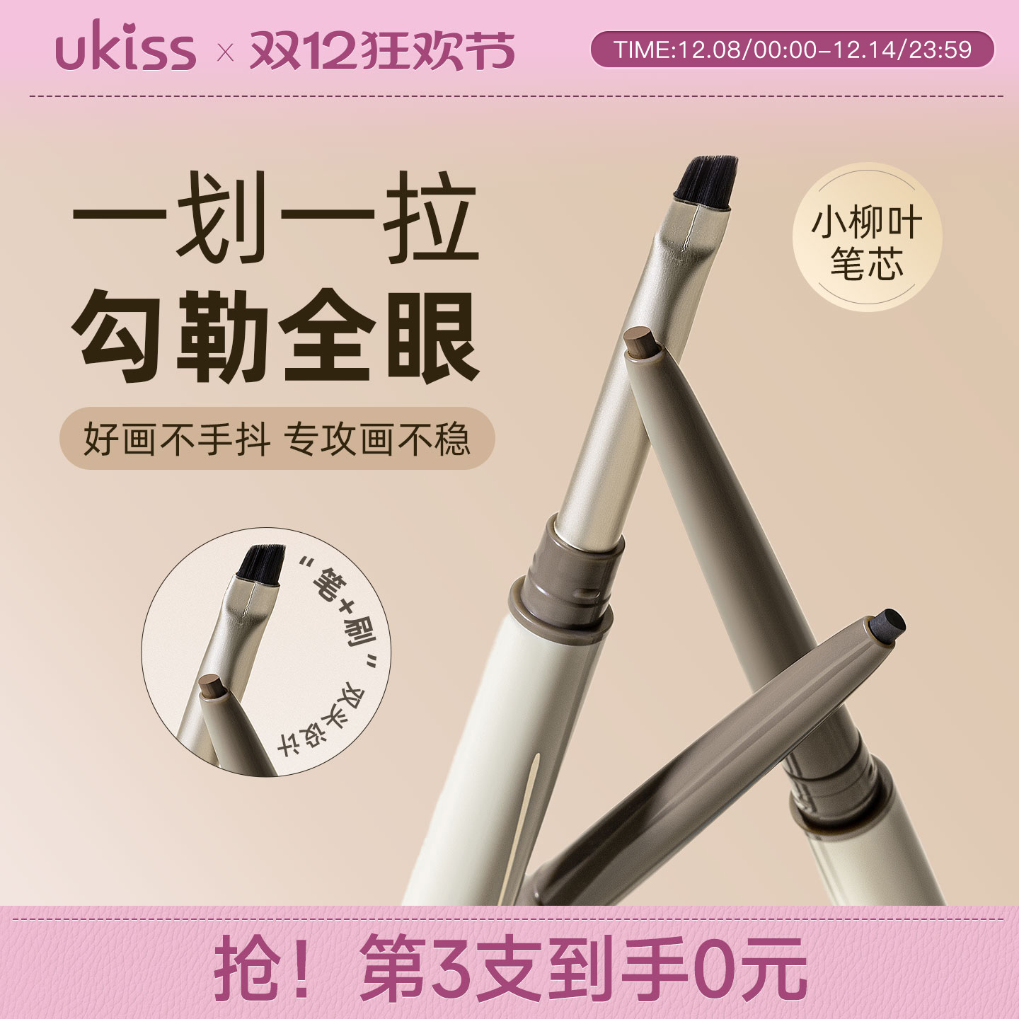 【店铺爆款】ukiss刀锋眼线胶笔防水防汗不晕染双头极细印章持久