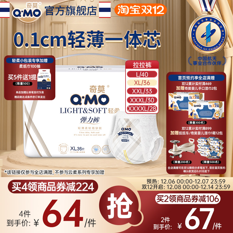 奇莫轻柔小包装弹力裤拉拉裤L-4XL婴儿尿不湿防漏轻薄透气柔软