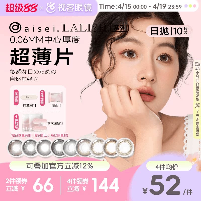日本aisei爱谢LALISH领丽秀日抛美瞳10片松子米酒隐形眼镜野山杏