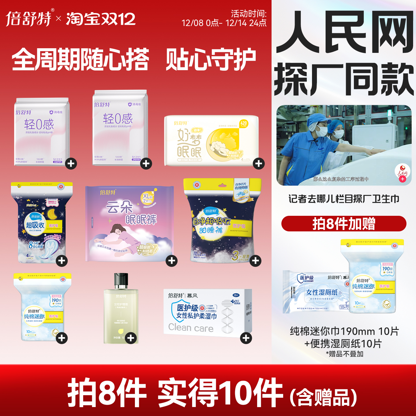【爆款任选8件】倍舒特轻0感超吸收卫生巾安睡裤日夜组合姨妈巾
