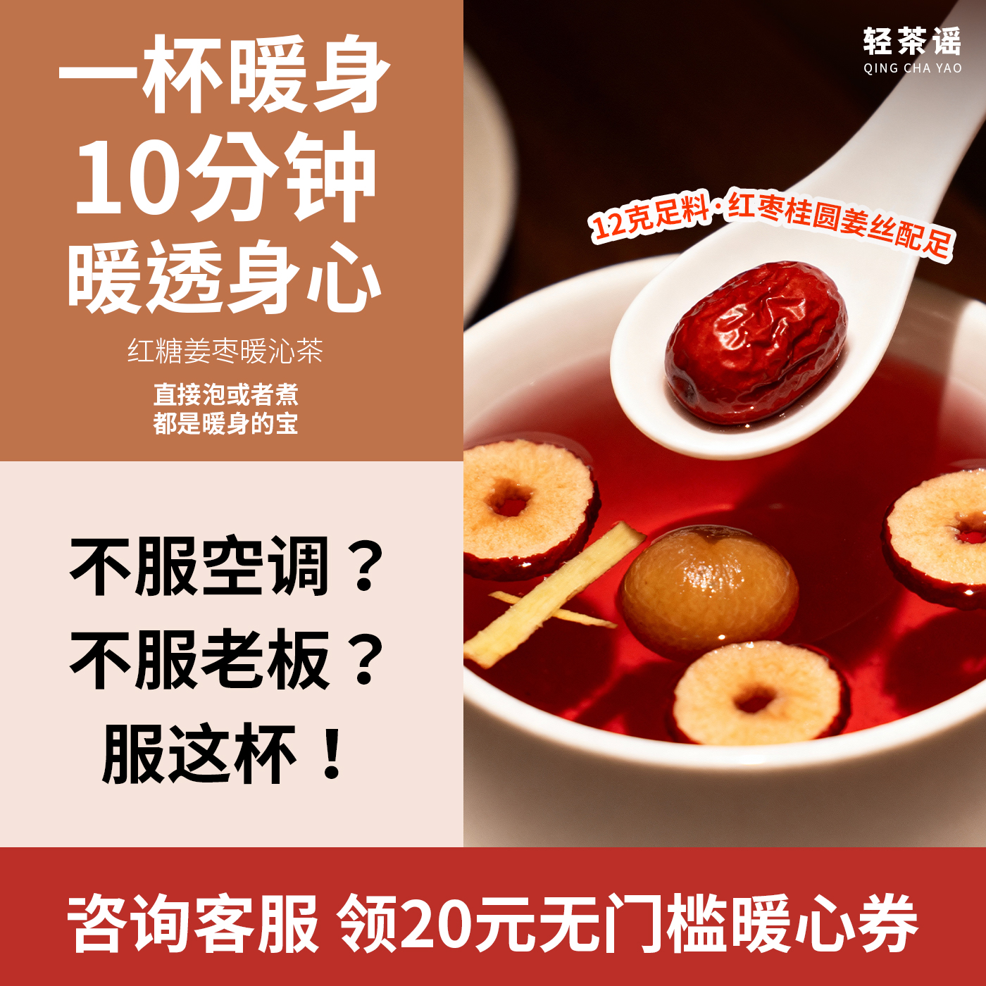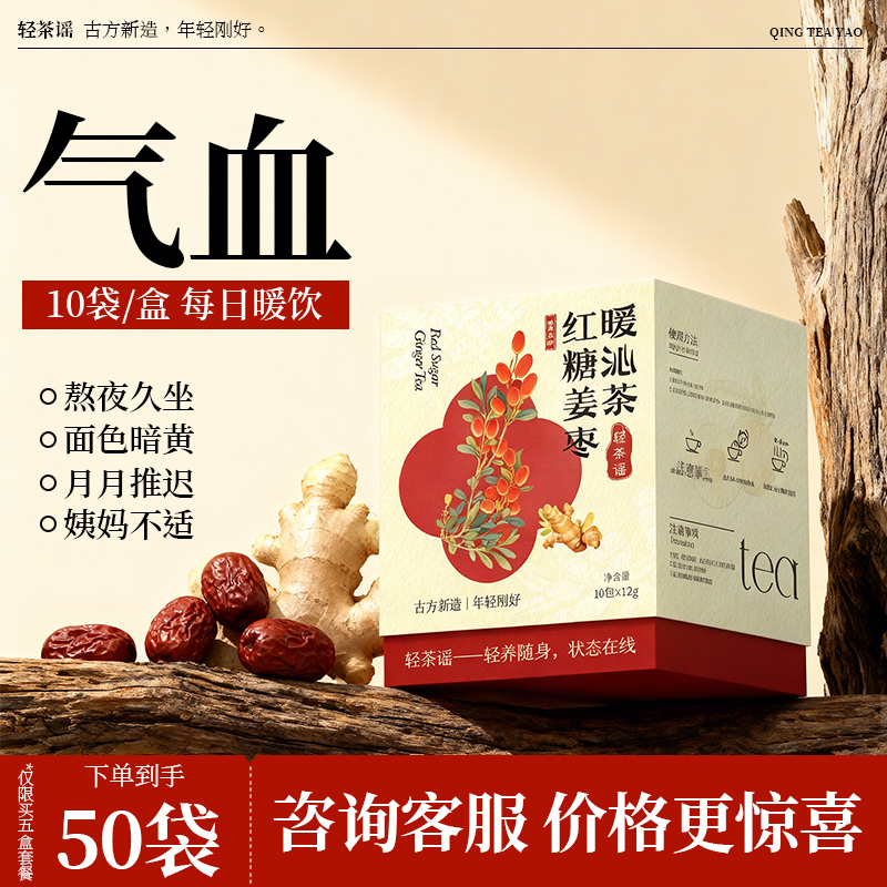 轻茶谣红糖姜枣茶 姨妈期女性暖身气血养生茶熬夜滋补上热下寒