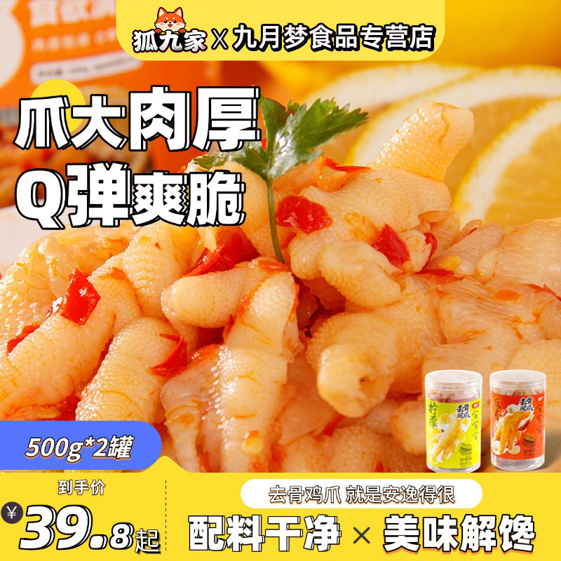 狐九家无骨鸡爪柠檬酸辣去骨凤爪脱骨网红解馋即食零食休闲小吃