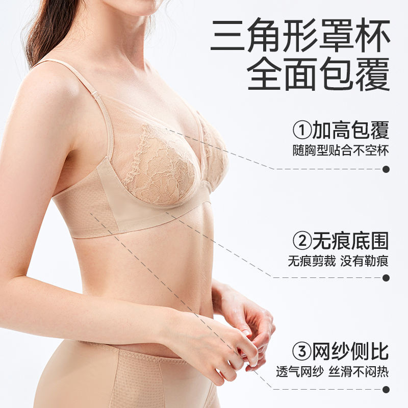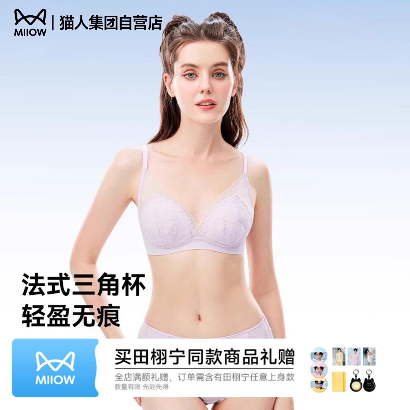 【商场同款】猫人内衣夏季薄鸢尾花蕾丝三角杯性感女大胸显小文胸