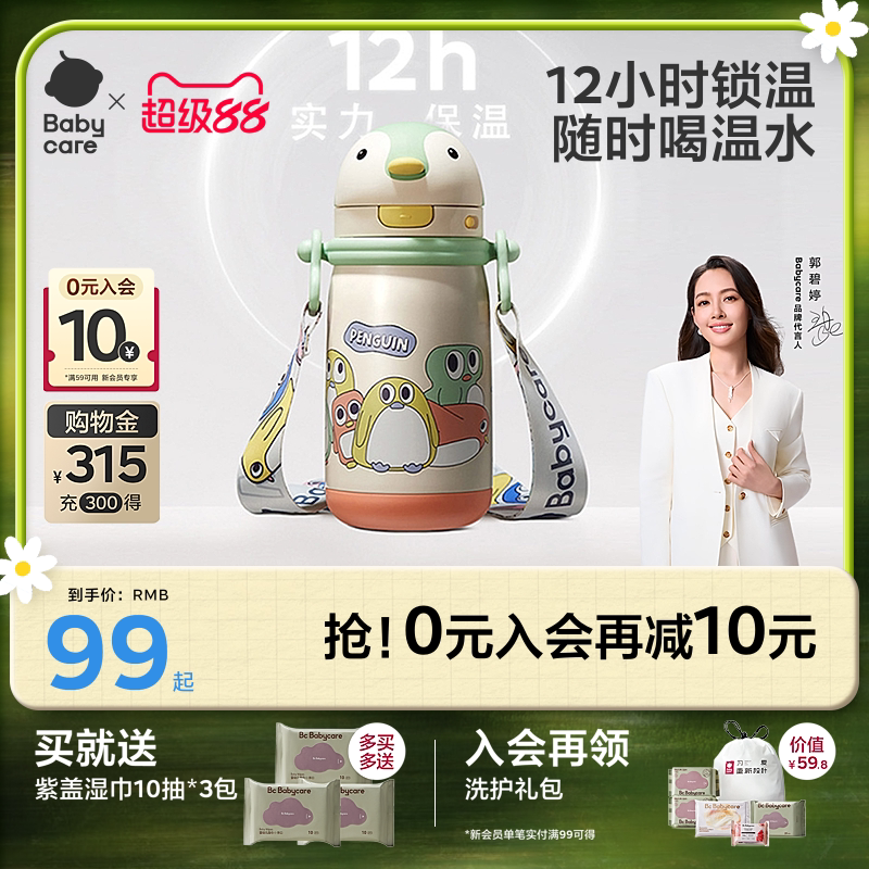 babycare小企鹅保温杯婴幼儿吸管杯儿童学饮杯6个月奶瓶宝宝水杯