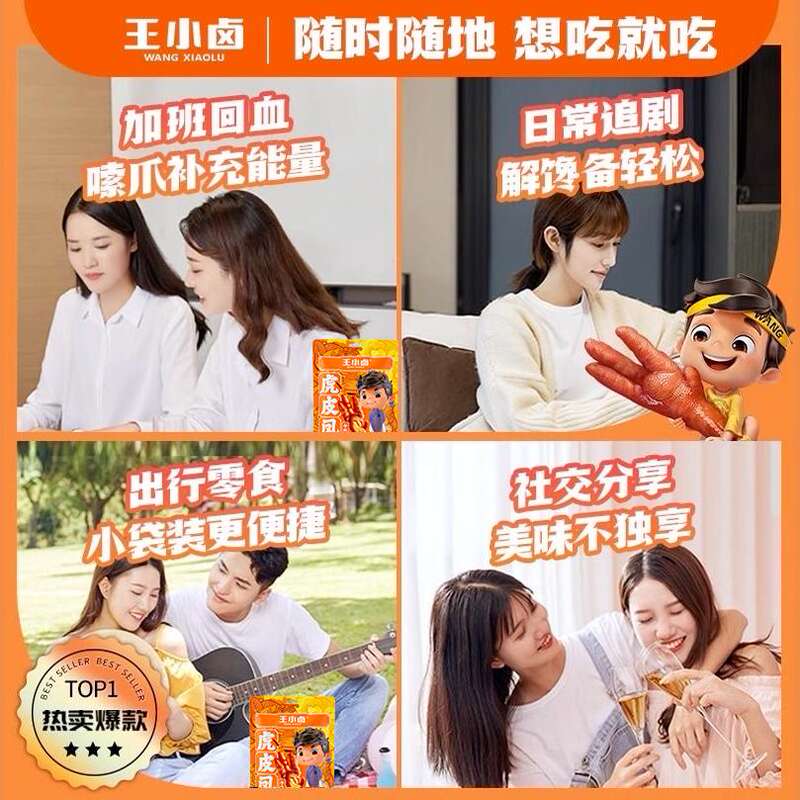 【福利】王小卤虎皮凤爪68g(一袋两只)卤味鸡爪肉类小零食-Y