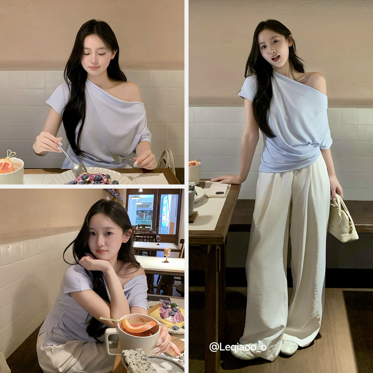 陈都灵|森马T恤女夏季短款荡领褶皱修身连肩袖开叉2026新款上衣