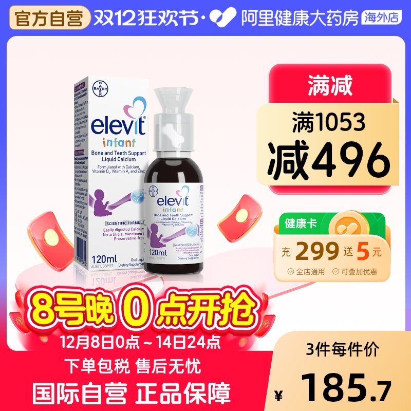 Elevit爱乐维婴幼儿液体钙DK锌D3K2儿童0防腐儿童钙非钙镁锌120ml