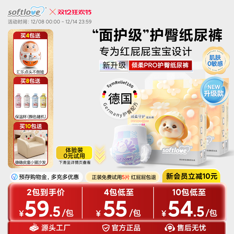 柔爱倾柔Pro护臀纸尿裤婴儿尿不湿夏季干爽透气超薄宝宝拉拉裤2包