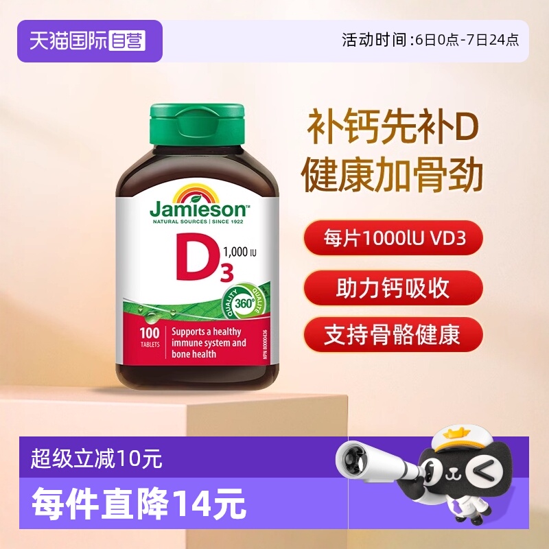 【自营】Jamieson健美生维生素D3营养片补钙维生素d助钙吸收片剂