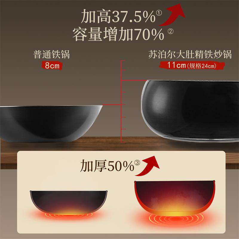 苏泊尔(SUPOR)古法大肚南瓜炒锅24cm家用铁锅无涂层平底炒菜锅