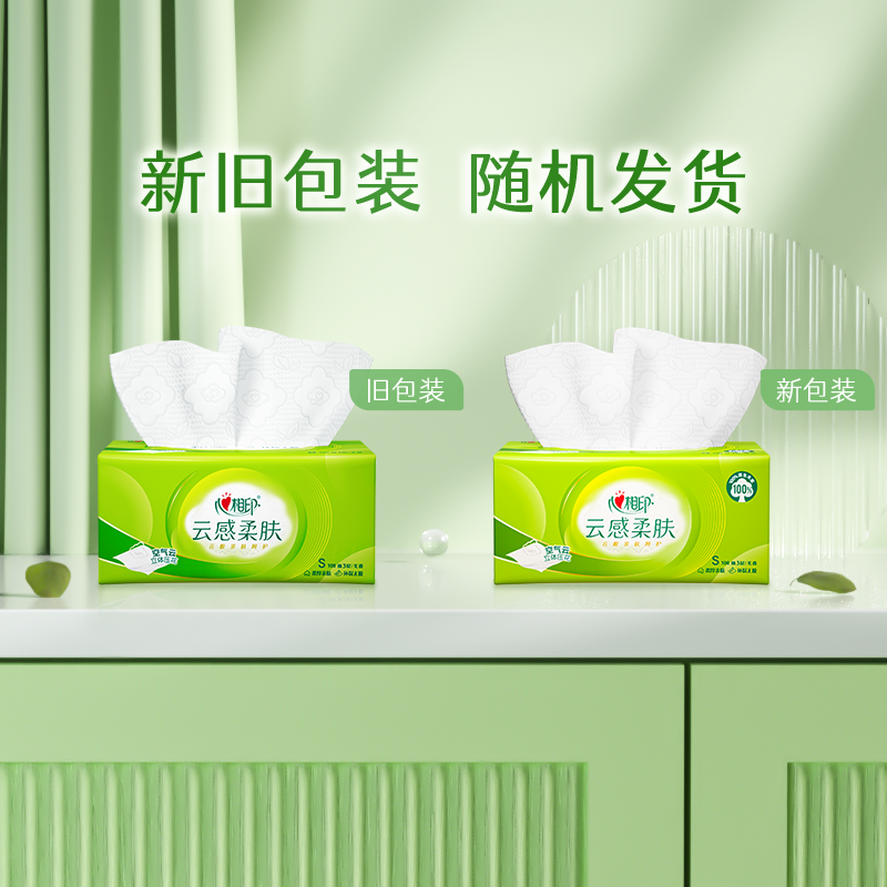 心相印抽纸云感柔肤面巾纸巾擦手卫生纸家用整箱S码3层100抽20包