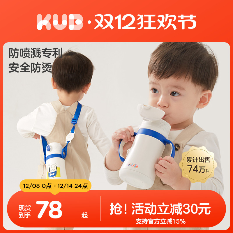 KUB可优比儿童保温杯直饮吸管杯316不锈钢带手柄幼儿园宝宝饮水杯