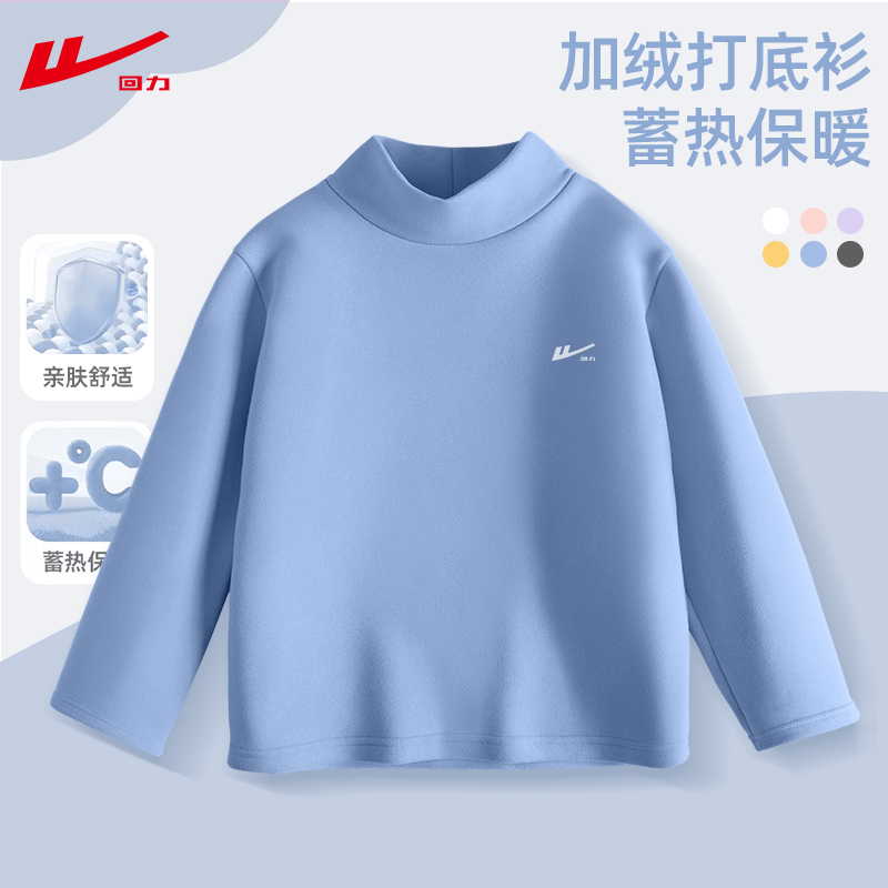 回力儿童打底衫男童女童半高领加绒内搭中大童一体绒秋衣保暖上衣