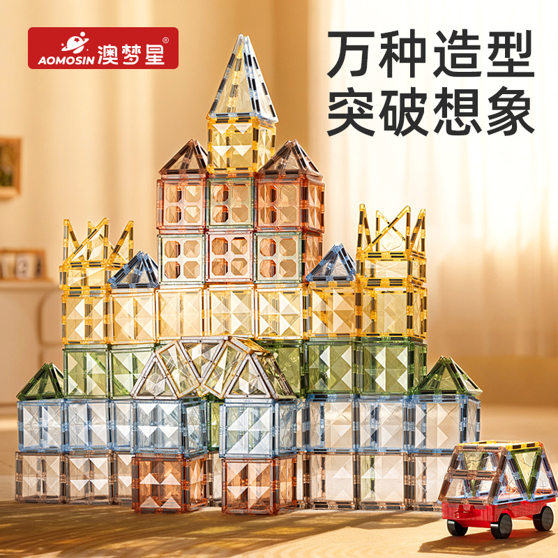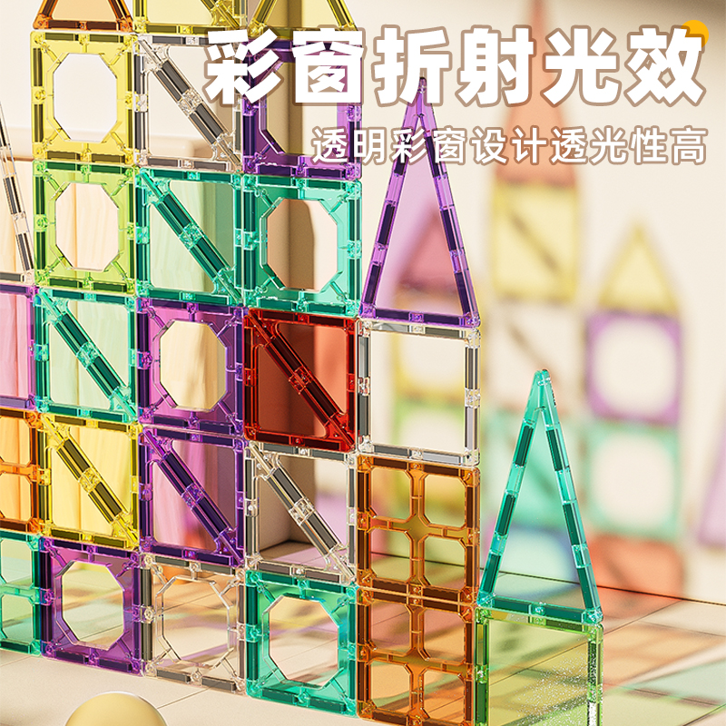 新款儿童磁力片彩窗钻面磁吸积木棒男女孩拼装图益智生日礼物玩具