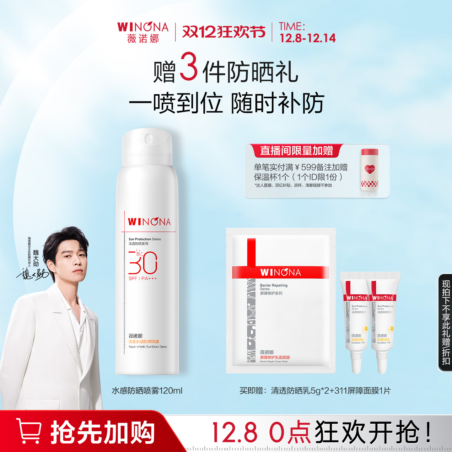 薇诺娜清透水感防晒喷雾 SPF30 PA+++ 全身防水防汗补妆速干修护