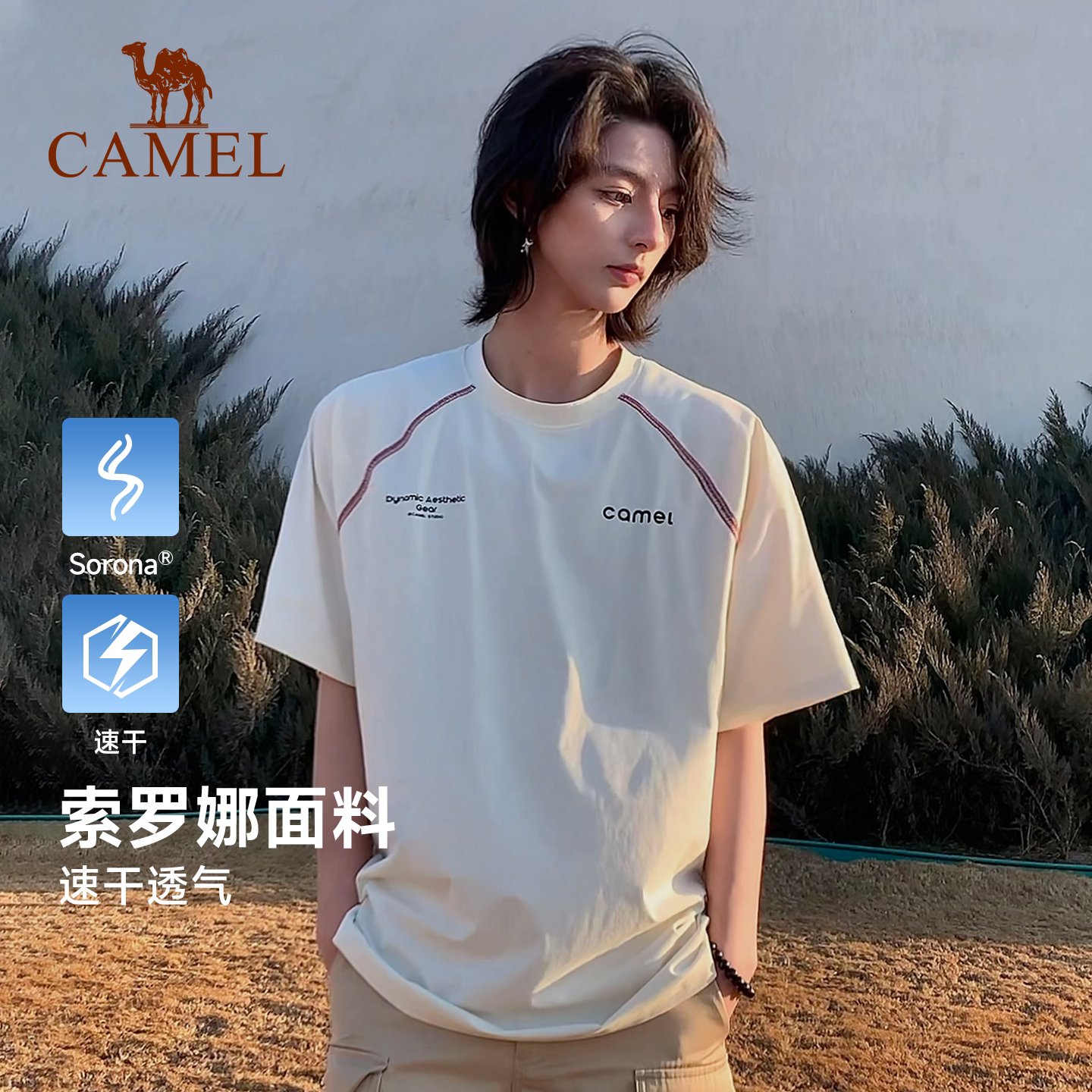 骆驼速干T神运动t恤速干短袖男款夏季抗菌冰感撞色吸湿哈苏线上衣