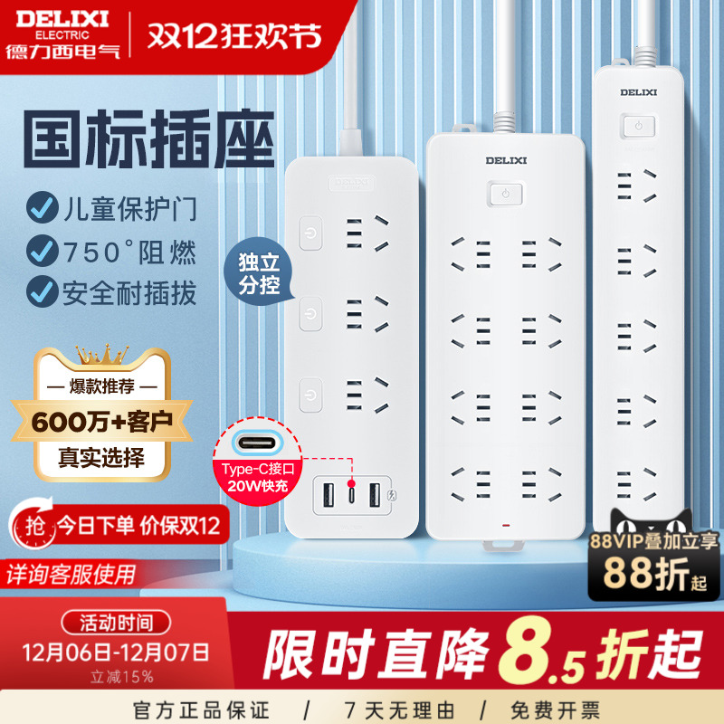德力西接线板排插托拖线板新国标插线板插排家用多功能插头转换器 德力西接线板排插托拖线板新国标插线板插排家用多功能插头转换器