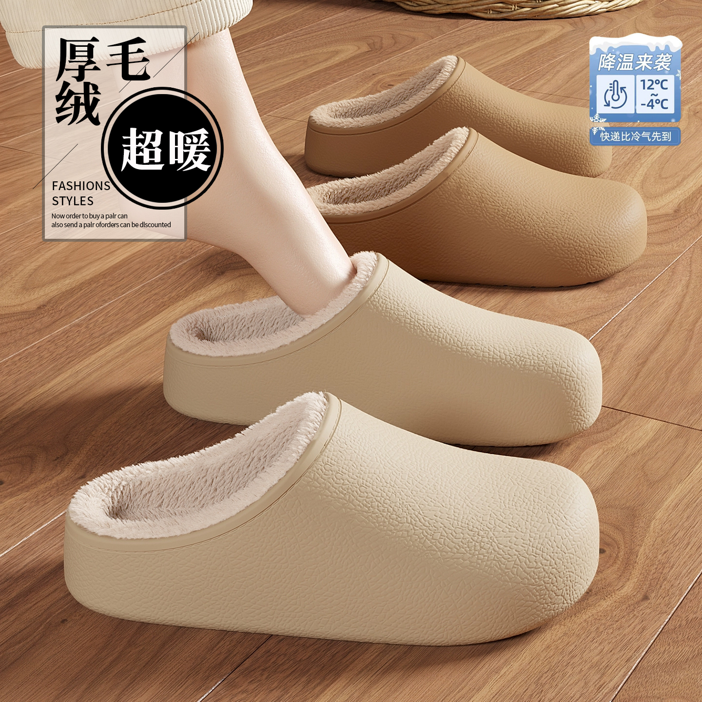 稻草人踩屎感棉拖鞋女士2025冬季防水防滑厚底加绒保暖棉鞋外穿男
