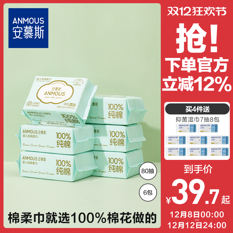 安慕斯婴儿100%棉柔巾一次性洗脸巾全棉洁面巾擦脸巾加厚纸巾80*6