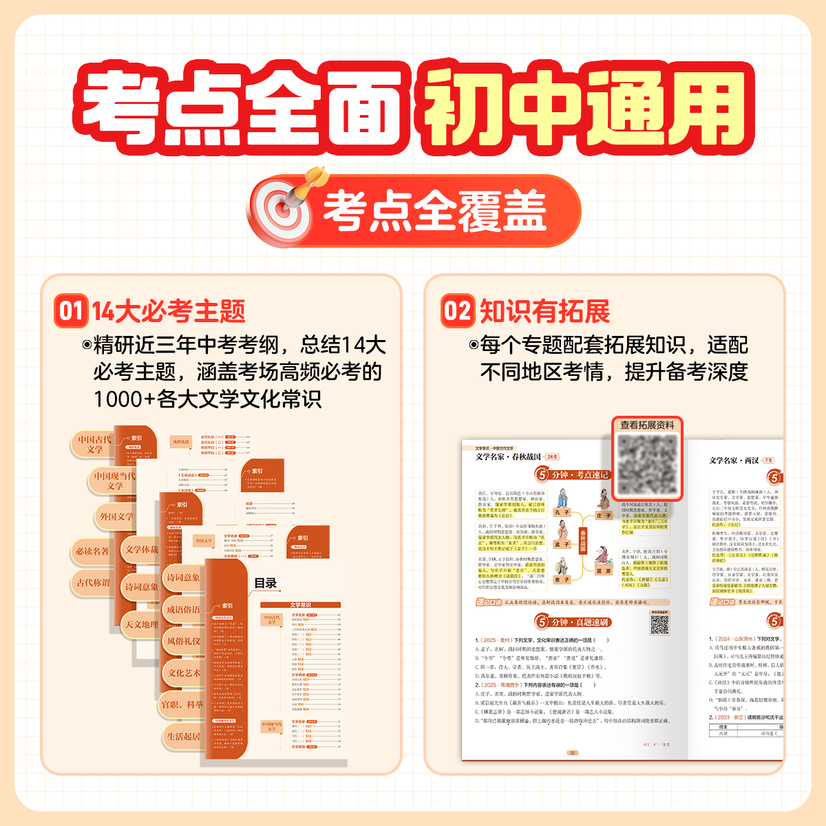 学而思 初中文学文化常识考点 10分钟速记初中语文常识通识大百科双目录速查考点口诀解题技巧必刷题中考真题训练阅读作文素养-WX
