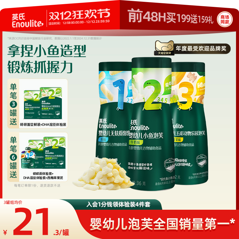 英氏小鱼泡芙3罐婴儿幼儿6个月零食泡芙宝宝零食饼干无添加盐