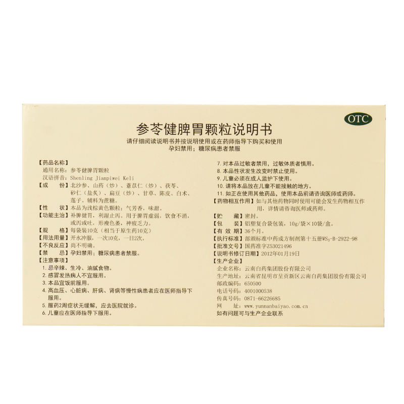云南白药云丰参苓健脾胃颗粒10袋补脾健胃脾胃虚弱不消化旗舰店