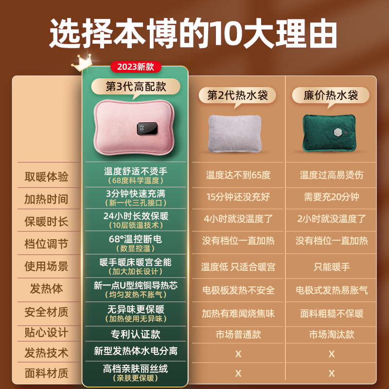德国本博热水袋充电暖水袋电暖手宝热暖宝宝保暖热敷防爆2025新款